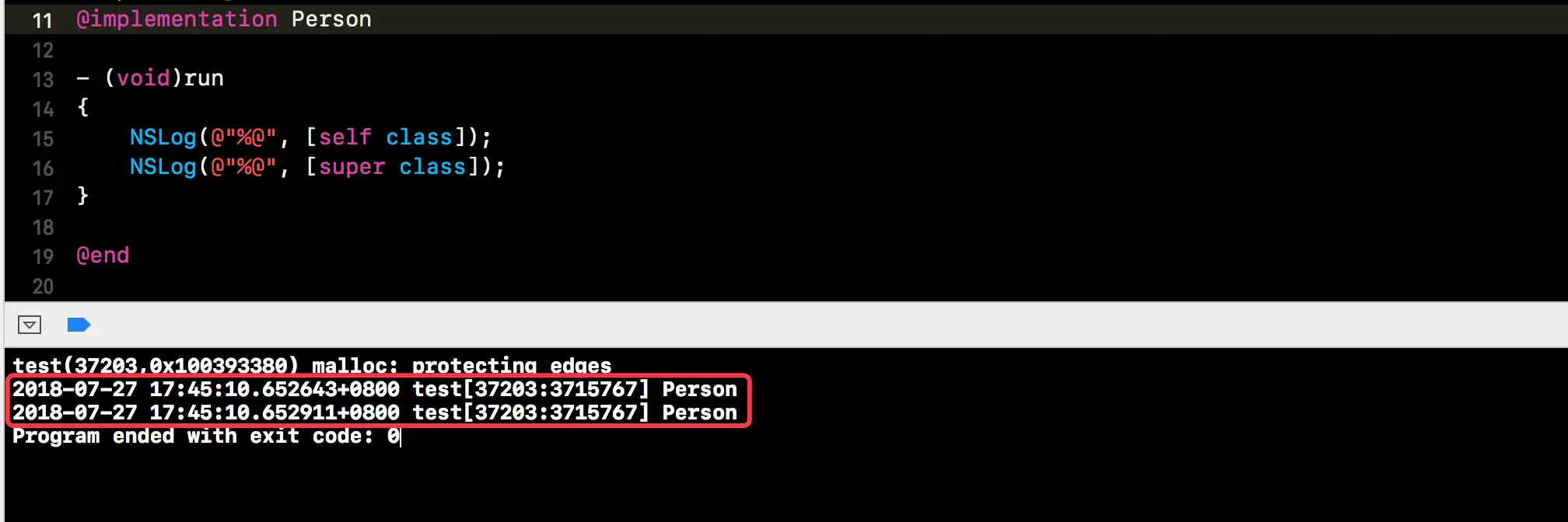 NSObject中找到了class方法,进行调用,由于消息的接收者是self,所以返回的是self的类,而不是NSObject。