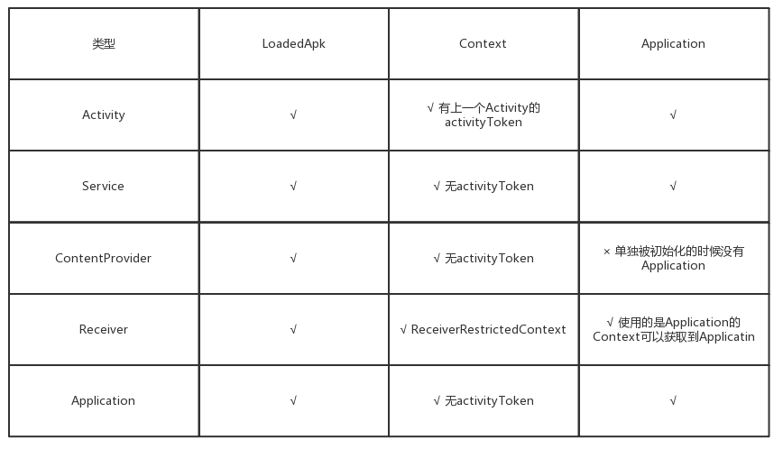 - 3.BroadCastReceiver:在AT.handleReceiver()中直接获取Application的Context,其自身并不创建Context