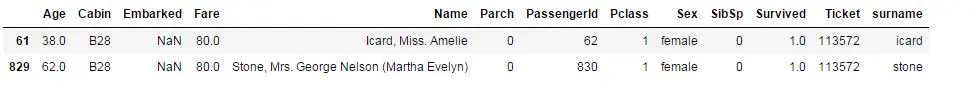 继续观察一下这个缺失值乘客有什么特点?如何利用我们之前的分析来处理?