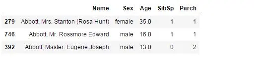 df.loc[df['surname']=='abbott',['Name','Sex','Age','SibSp','Parch']]