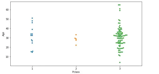 sns.swarmplot(x='Pclass',y='Age',data=X_test)