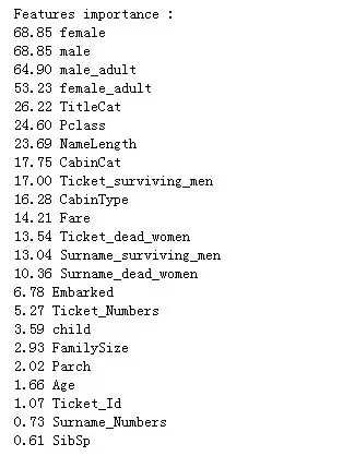 'CabinCat','female','male', 'Embarked', 'FamilySize', 'NameLength','Ticket_Numbers','Ticket_Id']