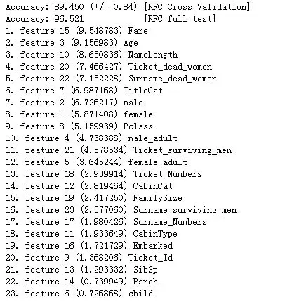 print("Accuracy: %0.3f (+/- %0.2f) [%s]" % (scores.mean()*100, scores.std()*100, 'RFC Cross Validation'))