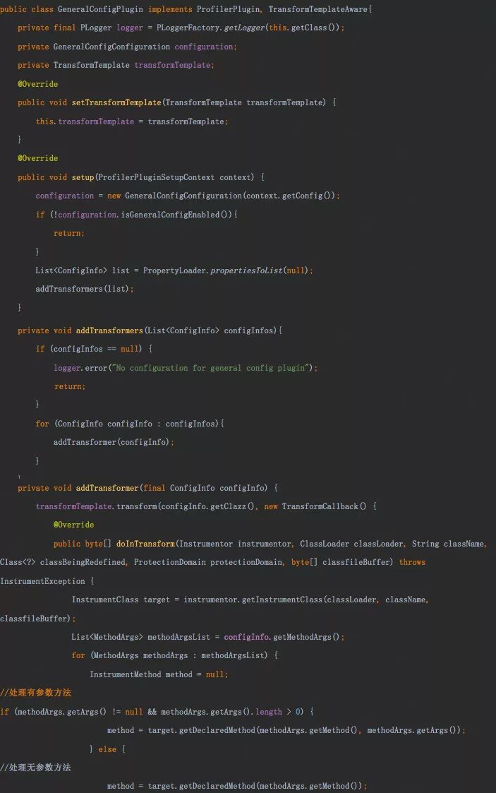 每当类被加载的时候,Pinpoint Agent 会寻找注册到该类的回调 TransformerCallback;