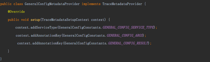 TraceMetadataProvider 实现类中提供 ServiceTypes 和 AnnotationKeys。