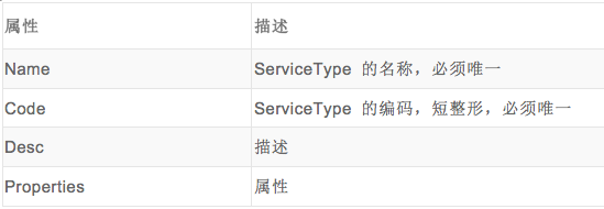 下表显示ServiceType包含哪些属性: