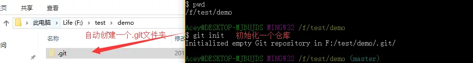 2)使用 git init 将一个文件夹变成一个仓库