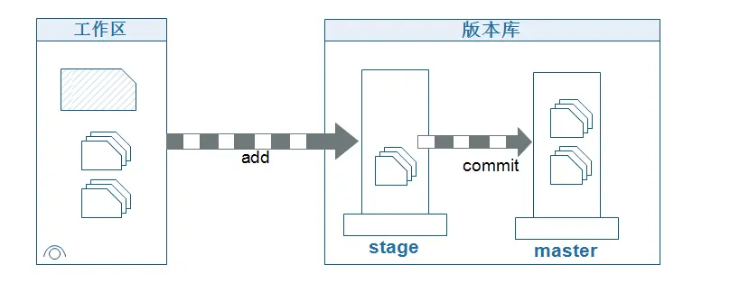 暂存区(Stage):工作区的文件使用add命令后会加入暂存区,而没有直接到仓库。