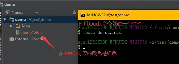 为了便于观察,就使用idea来做实验,文件不同的颜色对应不同的状态