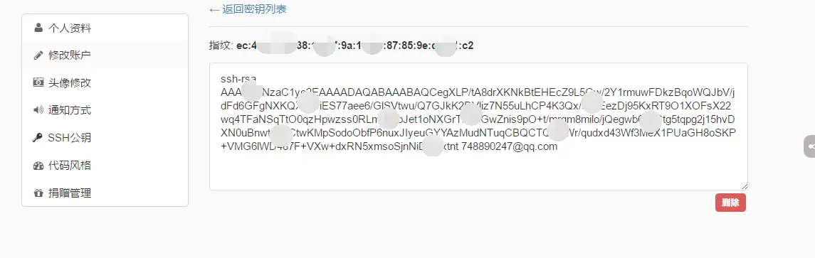 - id_rsa.pub:需在码云个人资料中配置,主要用来加密,当你拉取数据时进行加密。