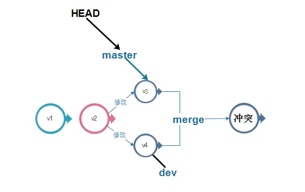 git merge dev //快速模式合并,直接将当前所处分支指针指向dev的当前提交版本。