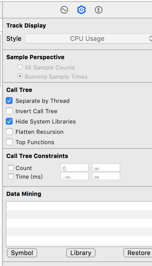 Hide System Libraries(建议选择):选上它只会展示与应用有关的符号信息,一般情况下我们只关心自己写的代码所需的耗时,而不关心系统库的CPU耗时。