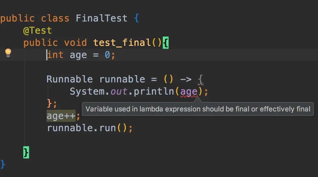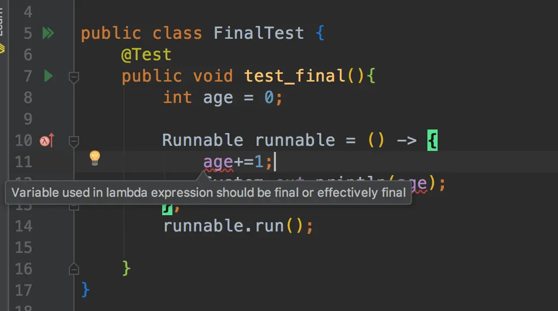 Runnable runnable = () -> {