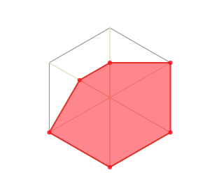 关于数据填充区,也就是雷达图当中,不规则的红色半透明的六边形。其实就是就可以看做中心点,到各个边角点之间线段为一区间这。之后就是将这个区间分成若干份,你占这个这个区间多少份,满份就是边角点,零份就是原点。