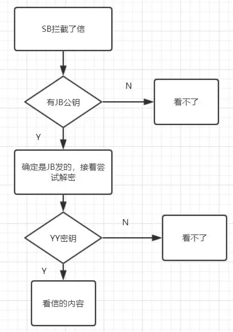 如果JB使用YY的公钥加密,那么就只有YY的密钥才能解密,这样就能达到只让YY看的目的;