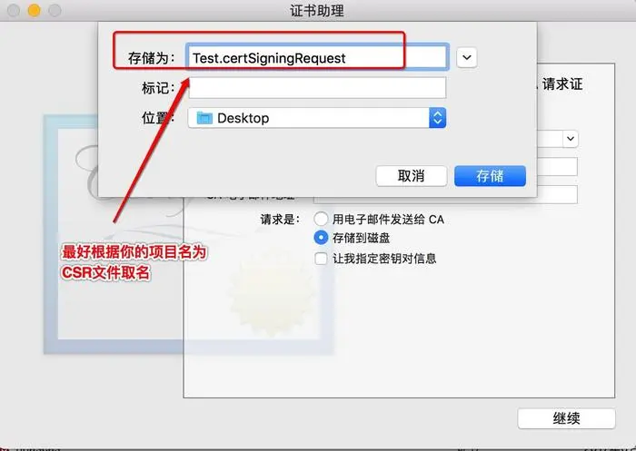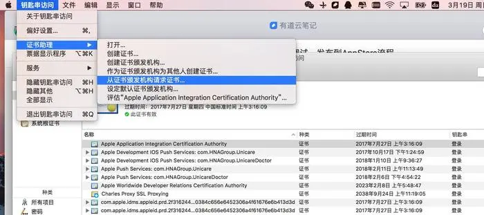 4)创建CSR文件01(打开钥匙串->证书助理->从证书颁发机构请求证书)
