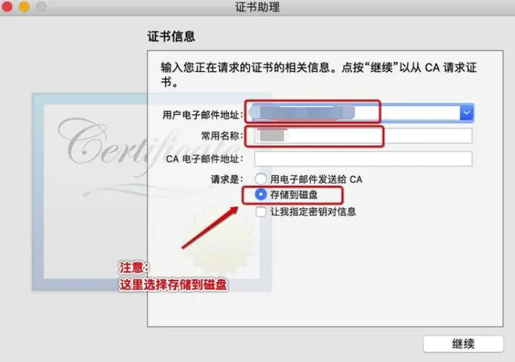 5)创建CSR文件02(填写电子邮件地址,常用名称,这两项都可以随便填,注意要把CSR文件存储到磁盘)