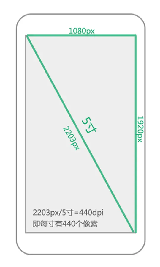 假设一部手机的分辨率是1080x1920(px),屏幕大小是5寸,问密度是多少?