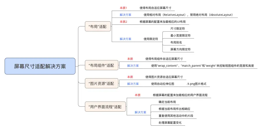 使得布局、布局组件自适应屏幕尺寸; 根据屏幕的配置来加载相应的UI布局、用户界面流程