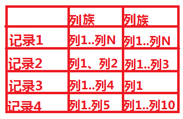 列族数据库,每一条记录可以有多个列族,且拥有的列可以不相同