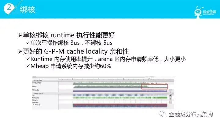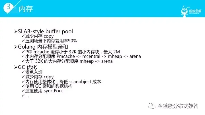 同时在内存分配上需要考虑 Golang 内存模型的亲和性,尽量减少 arena 区内存申请;最后,大家都知道 Golang的 GC 需要是你要去熟悉并适应他的,很多细节需要关注,尽量减少GC scanobject的压力。