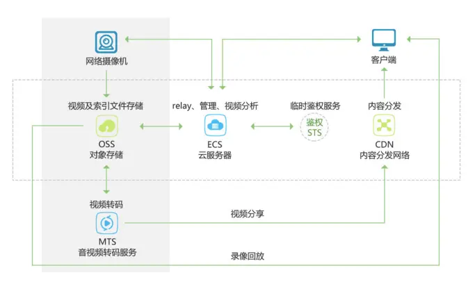 上传文件到OSS后,可以配合媒体转码服务(MTS)和图片处理服务(IMG)进行云端的数据处理,如下图所示: