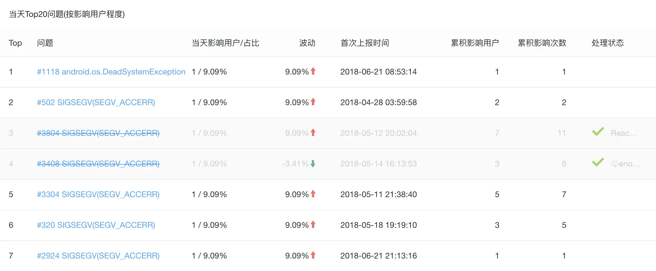 我们借助了腾讯 Bugly 平台进行线上异常的监控。Bugly 平台能为开发者提供异常上报与运营统计功能: