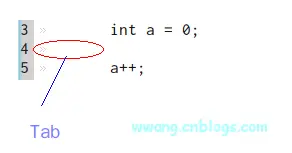 我自己的习惯很差,经常在代码的行尾留下一些空格。比如一行代码过长需要换行时,总是下意识的在换行的地方敲一个空格。另外,我常用的编辑器之一的Kate,为了对齐的需要,经常在空行的前面留上几个缩进的Tab(如下图)。