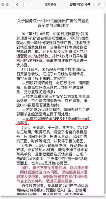 作为以安全为目标的HTTP通道, HTTPS被认为是HTTP的安全版,即在应用层又加了SSL协议,会对数据进行加密。在数据传输的过程中提供身份验证与数据加密通讯措施,那运营商劫持的乱象就可以完全被杜绝。