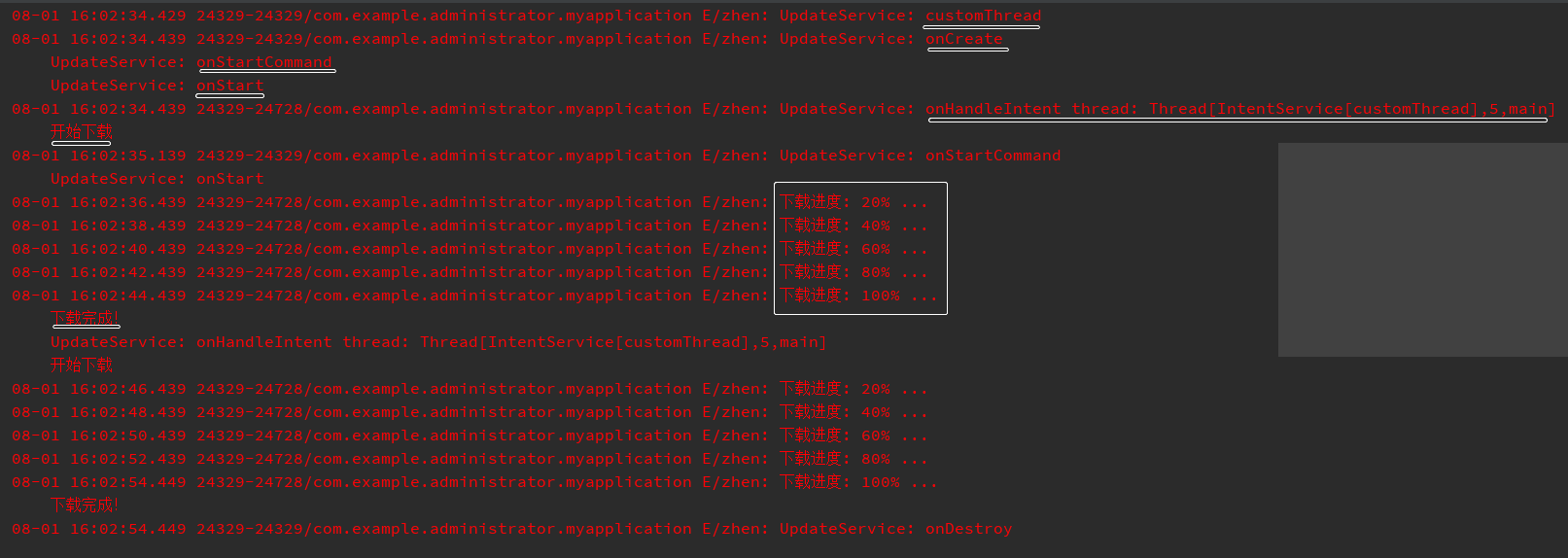 Log.e("zhen", "UpdateService: onHandleIntent thread: " + Thread.currentThread().toString());