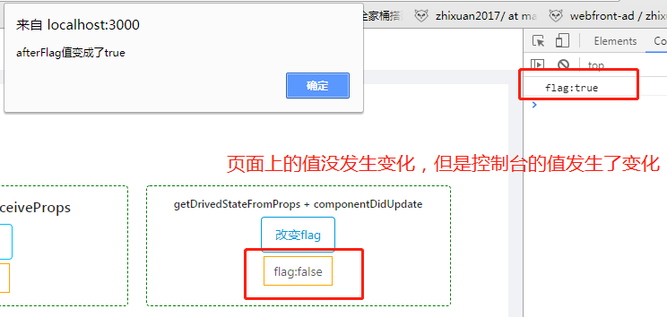 因为官方给出的定义是,componentDidUpdate是在组件dom更新结束之后立即调用,那么这个更新结束我理解的就是dom已经更新完毕渲染好了,但是我在componentDidUpdate里面调用了alert,发现其实进入该生命周期之后,其实dom还未发生变化,但是页面上的dom未发生变化,而componentDidUpdate获取dom的时候值确实正确的,可能这里是虚拟dom和真实dom不同步的关系吧,总之就是,在componentDidUpdate里面可以获取dom节点的操作,获取的值也是更新完毕的,下面的例子也是这样的。