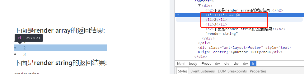 解决的痛点问题与上面数组是相同的,不过个人感觉更加优雅,首先不需要加上key,其次就是增加一个不渲染的空标签看起来更加的整体,因为以前已经习惯了JSX语法需要一个父标签,这种写法更符合习惯。但是在16.0里提到了Fragment,而更详细的介绍是在16.2版本里,之所以放在这里说因为和返回数组解决的痛点是类似的~ 下面例子来自官网: