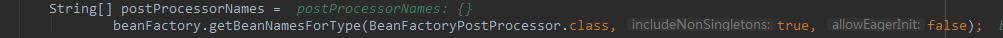 String[] postProcessorNames = beanFactory.getBeanNamesForType(BeanPostProcessor.class, true, false);接下来回去预实例化没有设置lazy-init的类