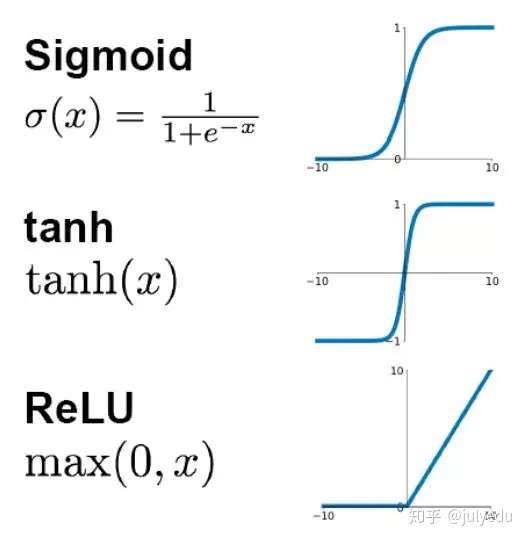 先看sigmoid、tanh和RelU的函数图: