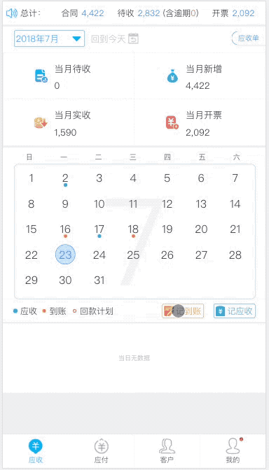 创建完客户后继续新建合同,建完合同后继续记该合同的到账)