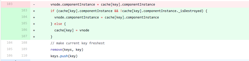 于是,我想,如果在此处判断如果组件已被销毁则不使用缓存,是不是就解决这个问题了,于是我提交了一个 PR: