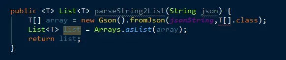 最常规的方法把jsonString转化为T[]数组,然后再使用Arrys.asList将数组转为List。