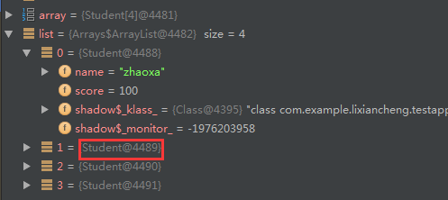 通过断点,可以看到list下面的数据已经转为Student类型了。
