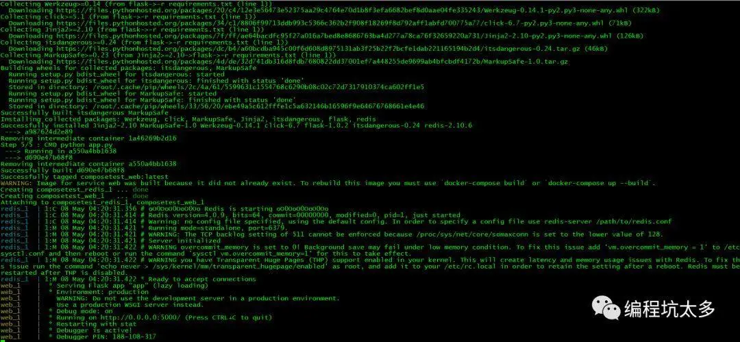 场景:redis容器,tomcat容器,nginx容器,mysql容器,这4个容器的启动是有顺序性的,docker compose就是为了组合启动的,而不是手动来启动。(本例子讲的是2个容器,redis和web)