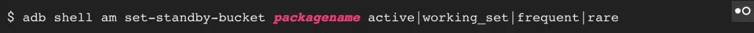 您可通过adb命令将应用手动划分至某一待机群组。输入以下命令,更改群组: