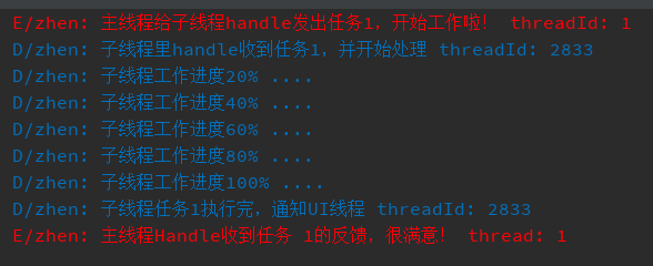 Log.d("zhen","子线程工作进度" + progress + "% ....");