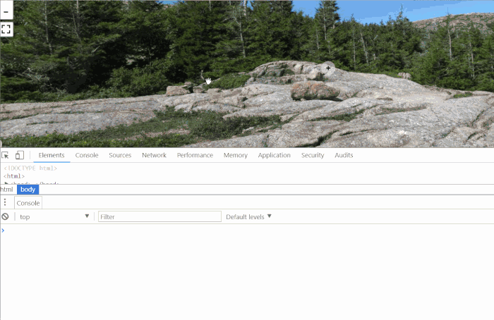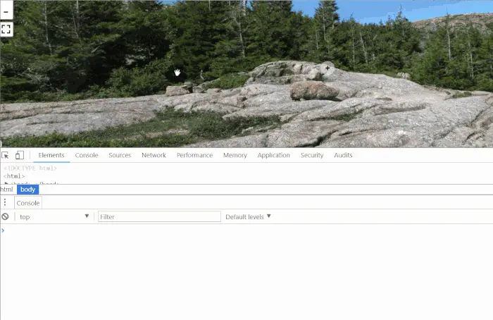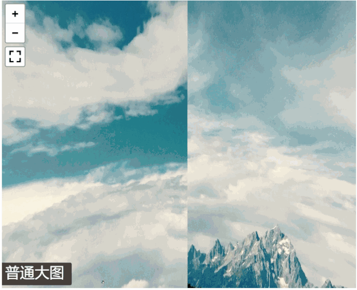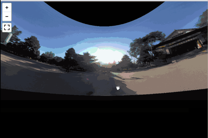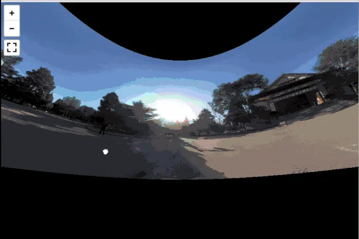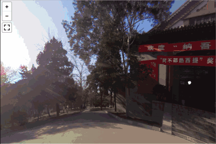 示例图中可以看出根据缩放的层级来分别加载不同清晰度的图片,在使用中可以通过鼠标滚轮、点击“+”按钮、手机双指缩放等操作来改变缩放层级,在Pannellum里表现为改变Hfov(Horizontal field of view)参数,取值为50~120,默认值为100。