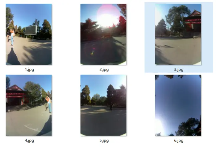 由合成好的全景图拆分出的不同方向的鱼眼图片: