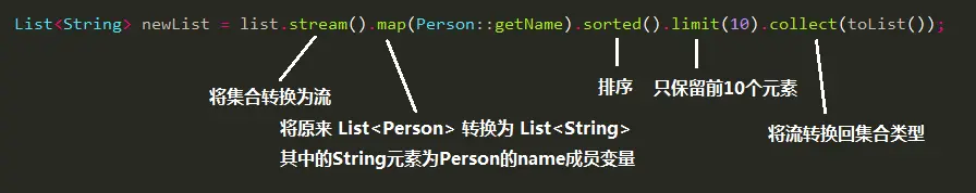 Stream<String> stream = list.stream().map(Person::getName).sorted().limit(10);