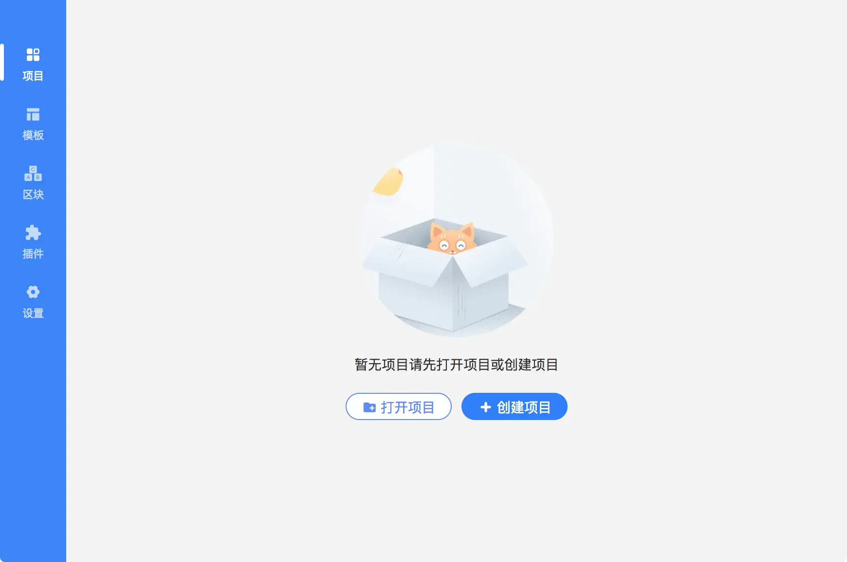 下载 GUI 工具并安装 => 可视化的选择我们提供的初始模板创建项目 => 可视化的创建页面并选择我们提供的 100+ 高质量可复用区块 => 生成代码进行二次开发 => 开发完成之后点击打包编译出 HTML、JS、CSS 文件 => 部署使用