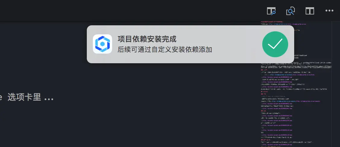 在写上面的时候已经提示我依赖安装完成了(很人性化有没有):