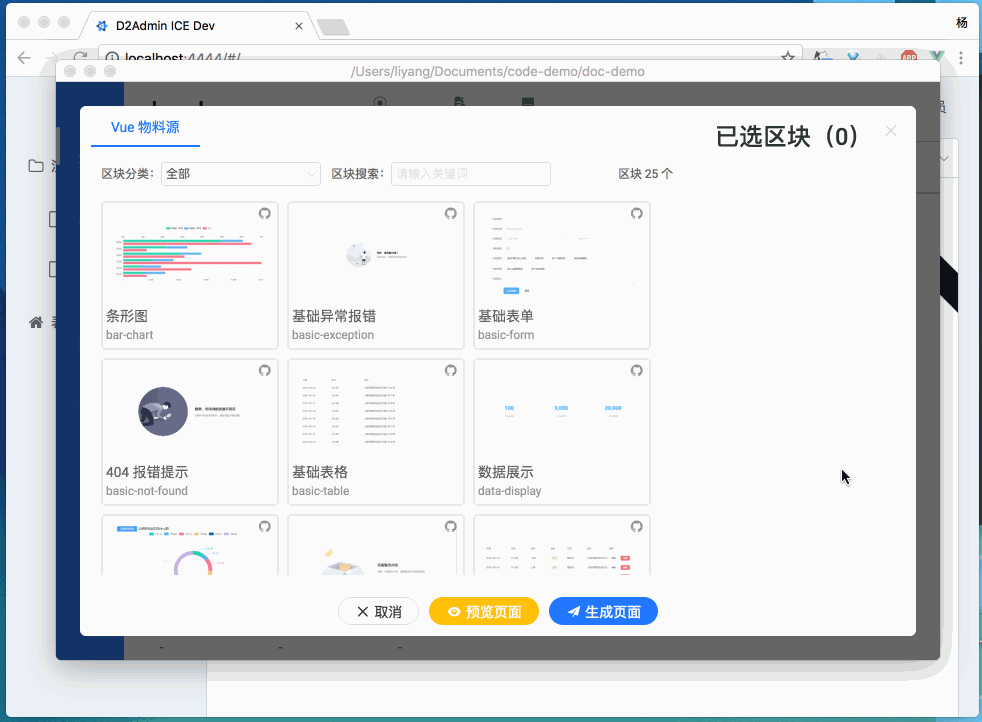 在我和阿里的开发者一个月的对接之后,D2Admin ICE 诞生了,作为飞冰平台上第一个非官方 vue 脚手架,D2Admin ICE 承担的希望还是很大的!下面使用这个脚手架做演示,展示如何不写代码建页面,不写代码出图表!