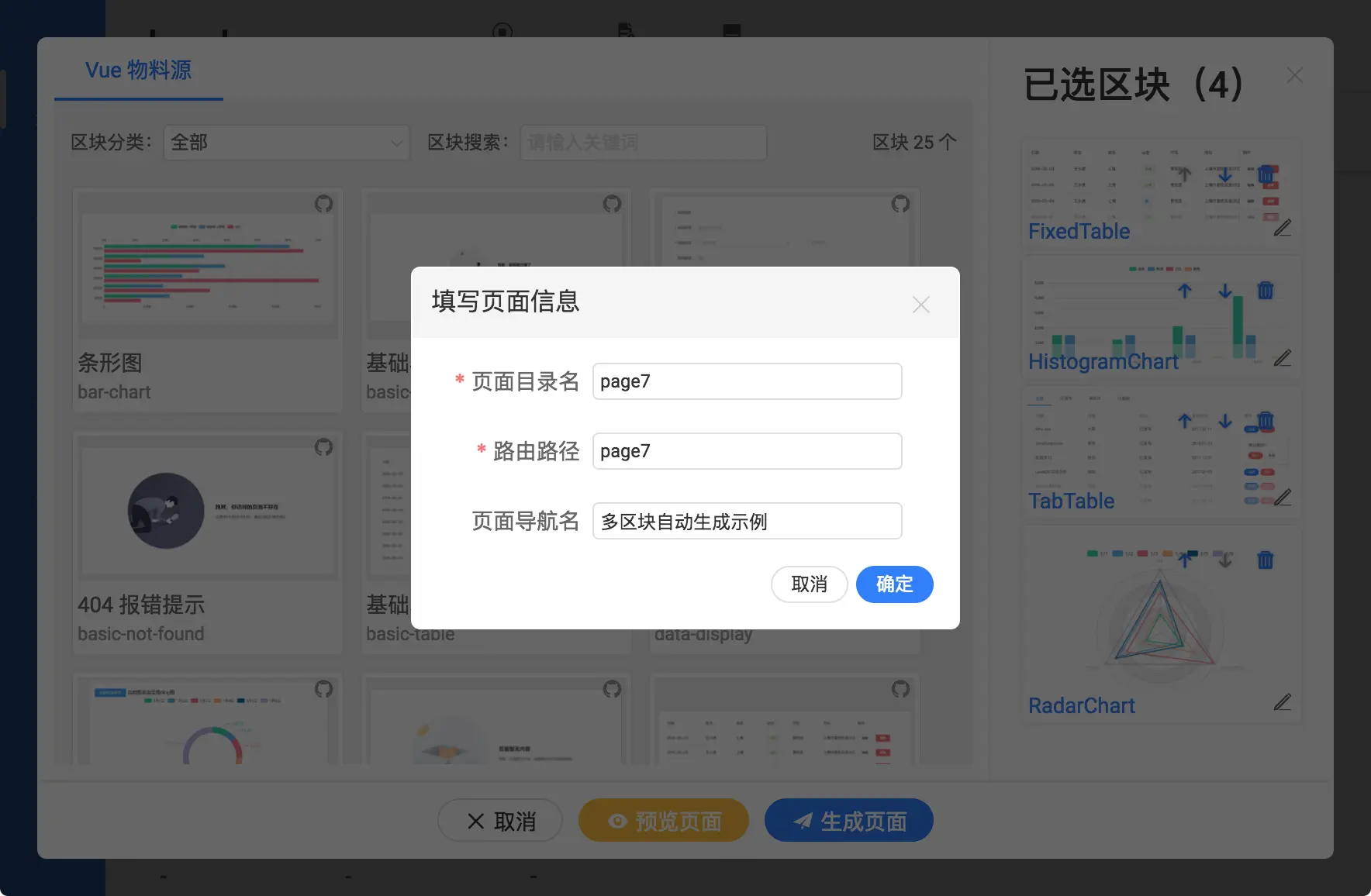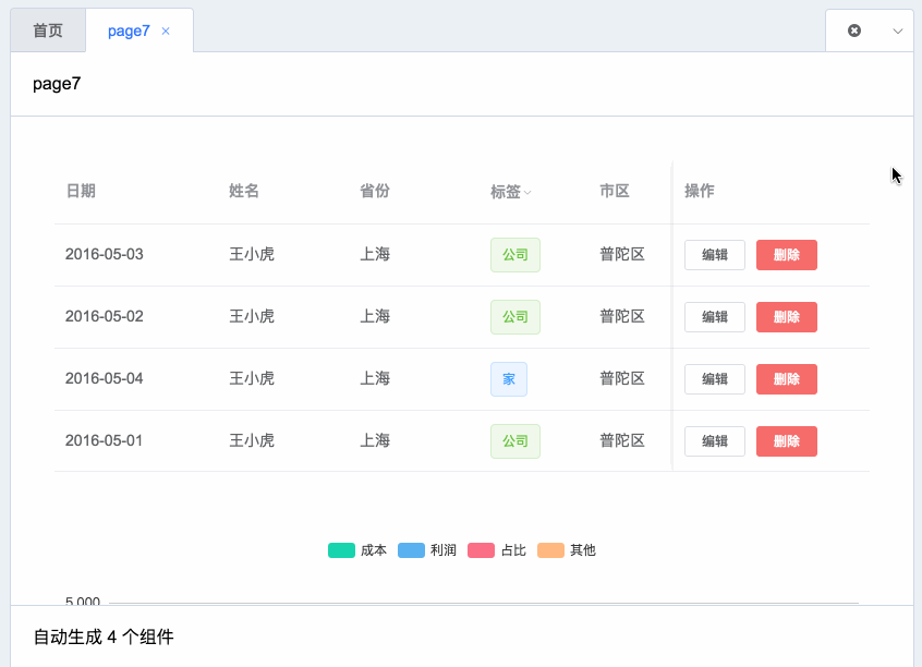 自动生成的页面组件: