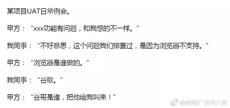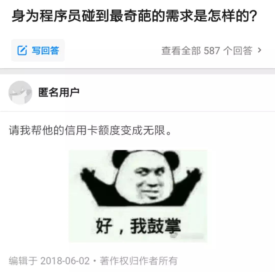 答案是肯定的,如果出现了上面这位仁兄这样的变态需求,换谁都受不了。开发一个产品的基本技术常识至少你要懂。当然,懂技术不一定要自己会写代码,懂代码,但逻辑思维和程序员一样同等重要,甚至要做得更好,很多时候,Bug 是因为逻辑混乱造成的。