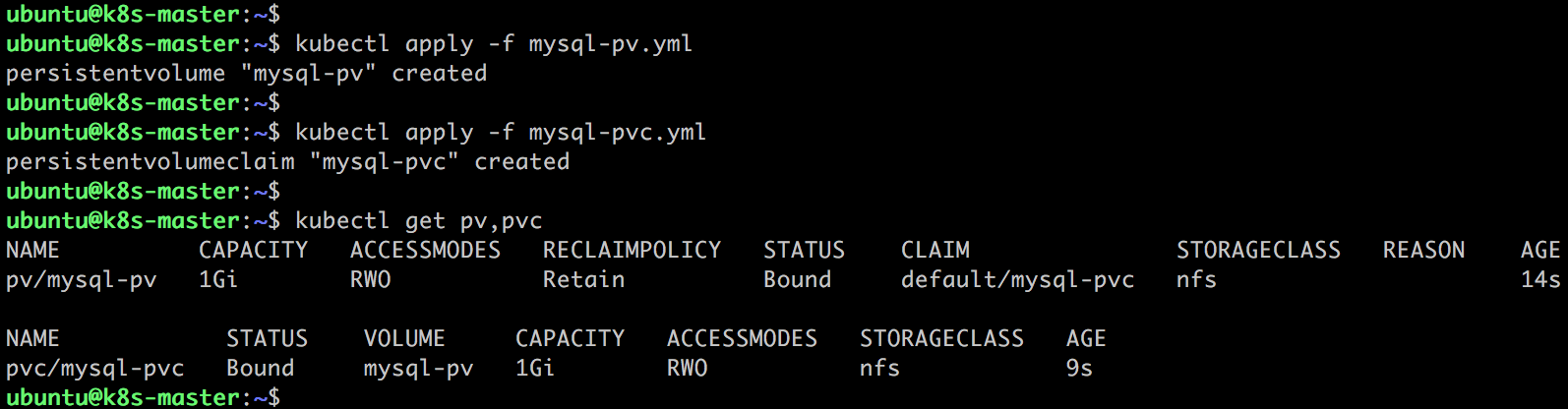 创建 mysql-pv 和 mysql-pvc :